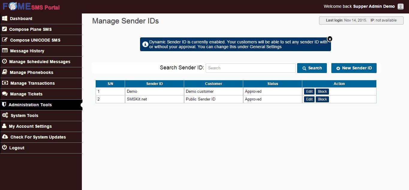 Fome SMS Portal now gives you the flexibility of choosing between Static and Dynamic sender ID for your SMS portal.