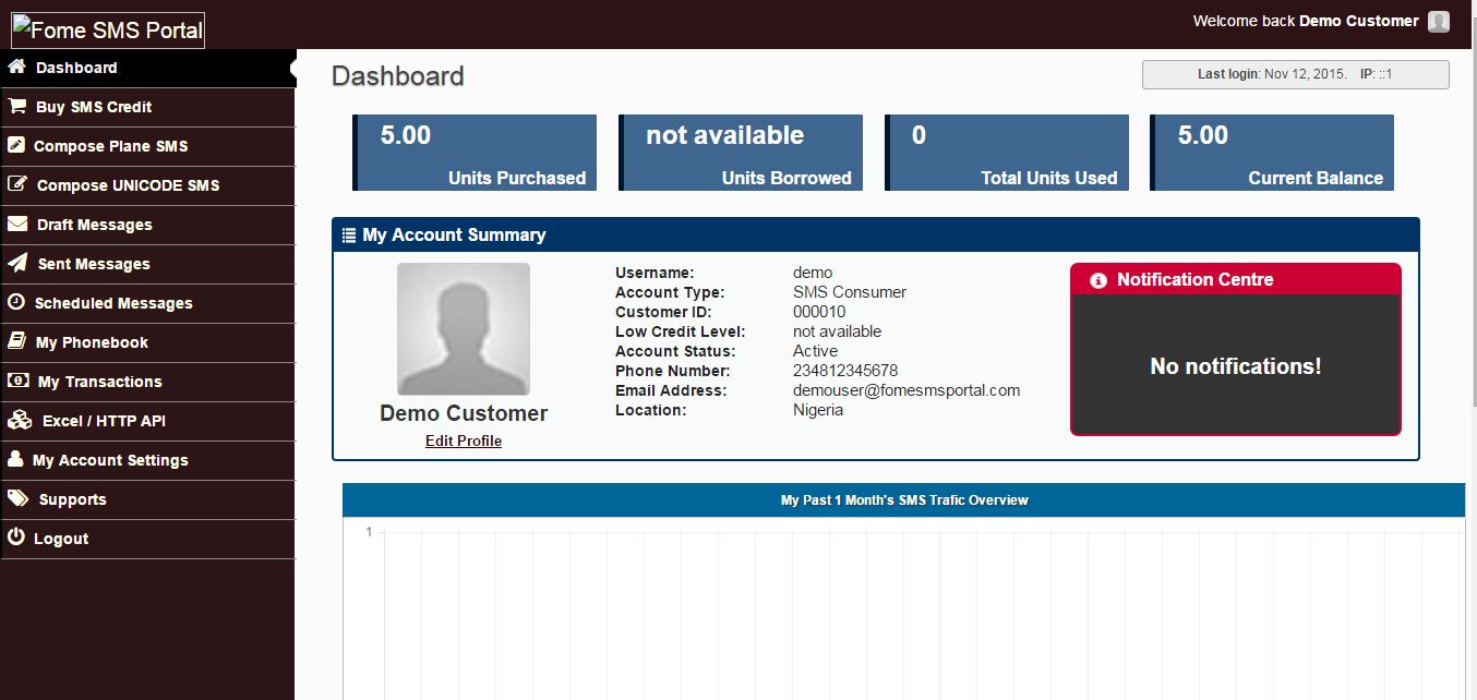 Fome SMS Portal is a powerful SMS Portal for Bulk SMS resellers and providers. Fome SMS Portal provides SMS customer management tools, SMS Messaging tools, Phonebook management tools, Billing tools, Automation tools, and much more.