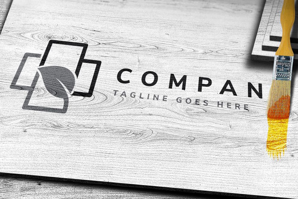 Simple and modern logo template design that combines a leaf with a medical cross.