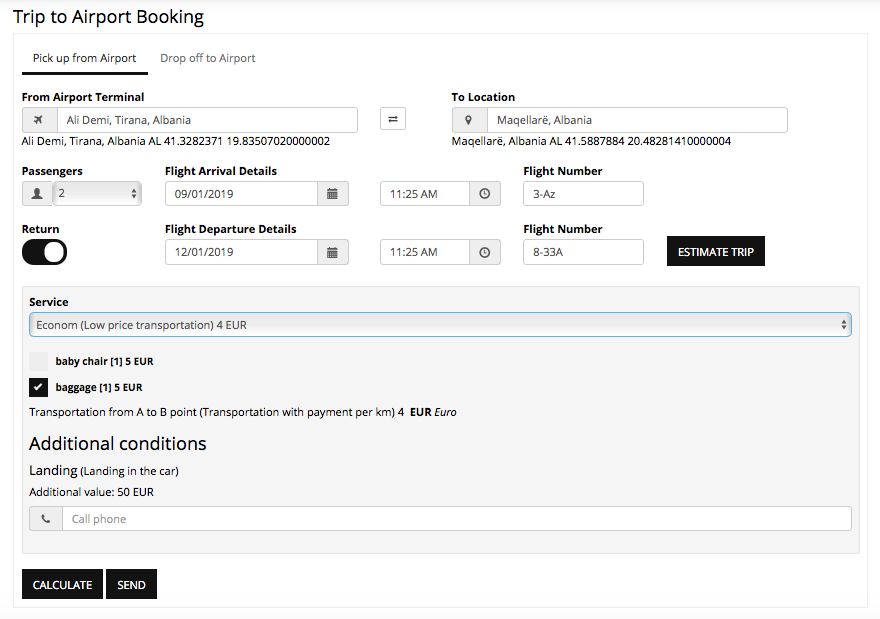 | Tags | calculator, pricing, price, Car, System, delivery, booking, uber, trip, travel, plane, airport, jet, transport, transfer, rental, airplane, cab, taxi, quote, car rental, journey, bus, estimate, food delivery, taxi booking, cab booking, train, price calculator, shuttle |