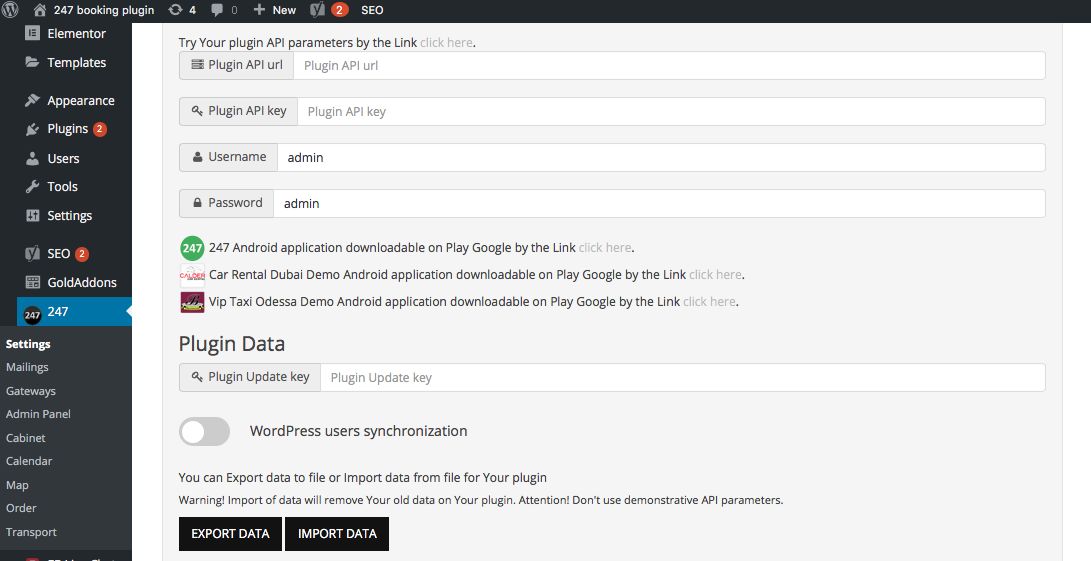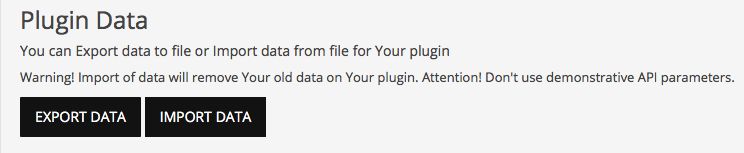 Warning! Import of data will remove Your old data on Your plugin. Attention! Don't use demonstrative API parameters.