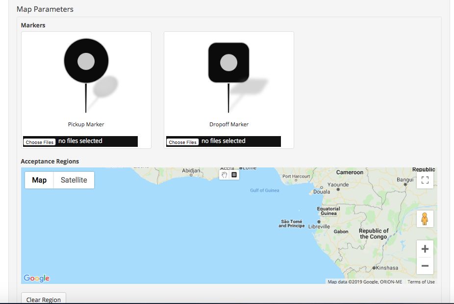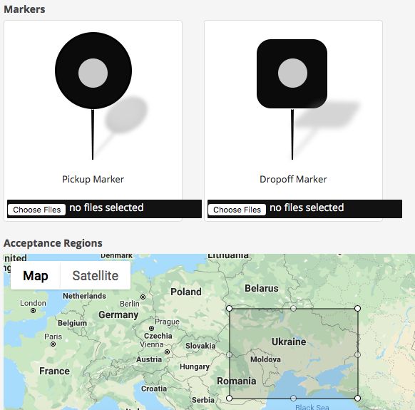 Set a custom Map Markers (Pickup, Dropoff). Choose the your Area on the Map and set the square of Custom Area