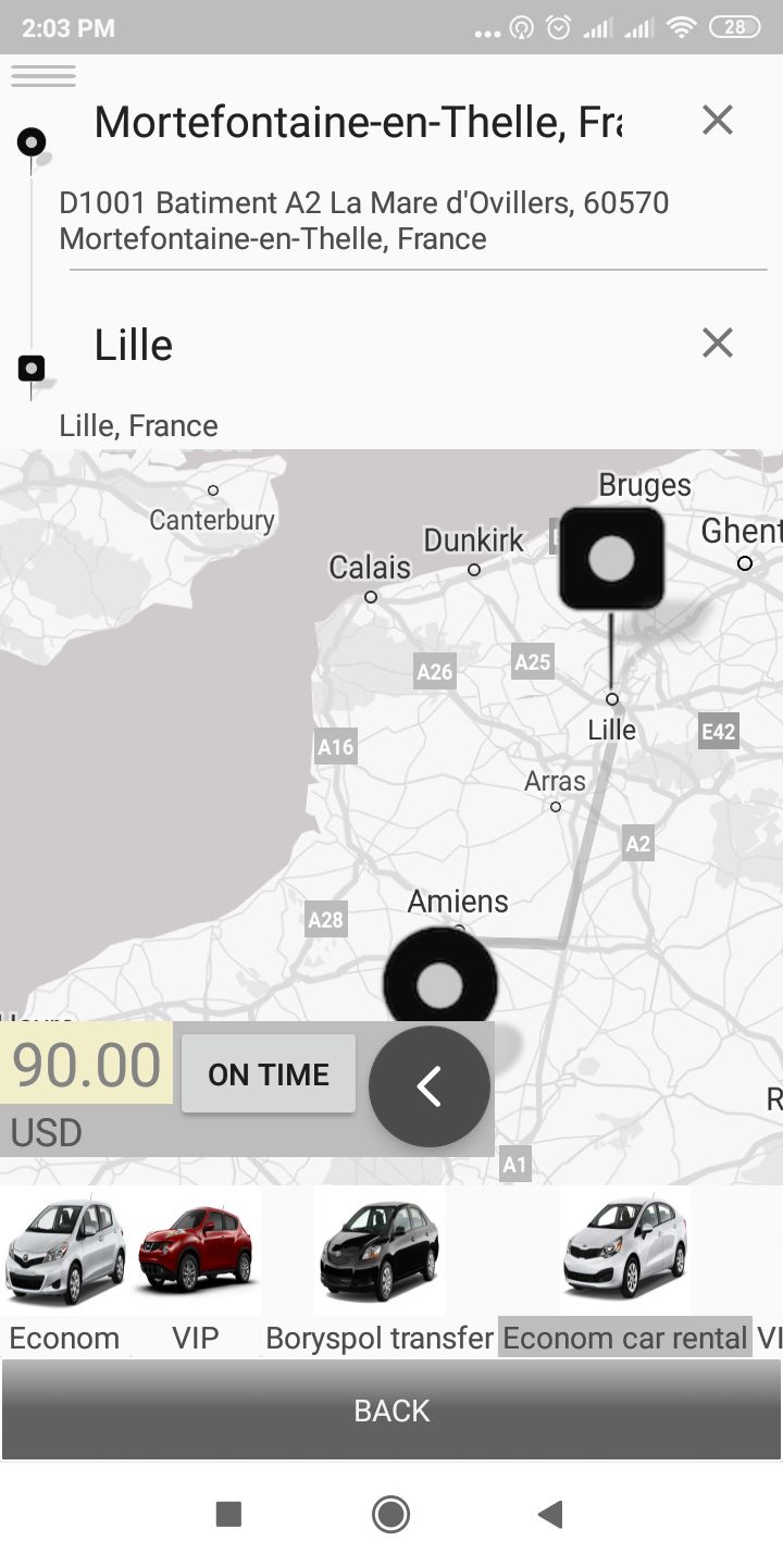 - Android mobile apps for client and driver
