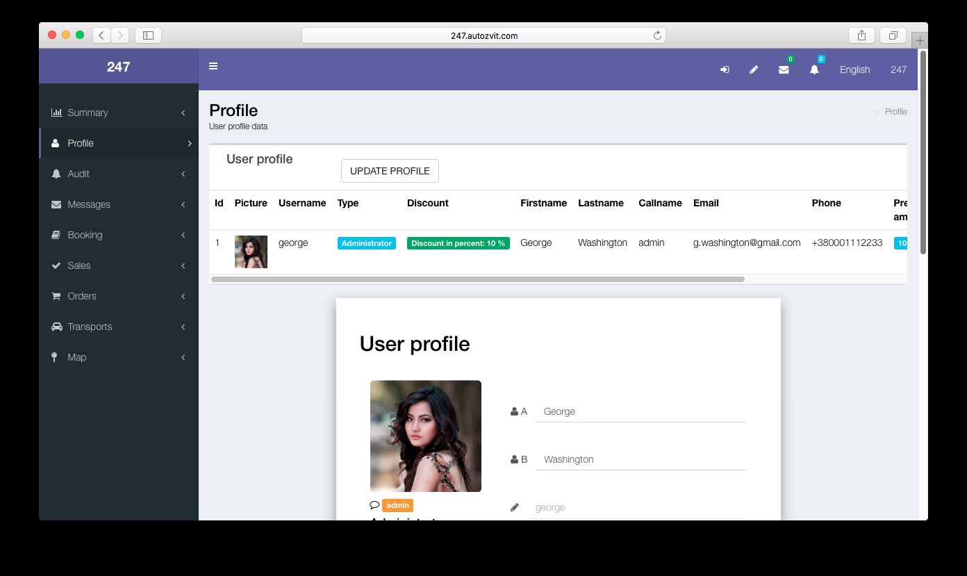 - Cabinet forms (profile, messages, order, reports, payments)Â
