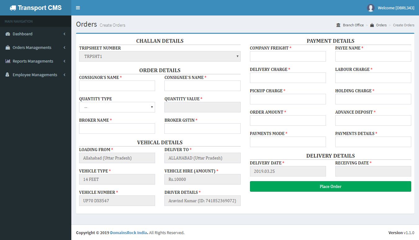 A Software to Manage and Controls the Transport System. Easily Add Orders and Manage Orders Reports with Profit and Loss Using Daily/Weekly/Monthly. Download Excel File and Easily Prints All Orders and Reports. Expense Book and Expense Passbook to Manage Expenses for Head Office and Branch Office. Employee Managements with Attendance, Leave Application Form, Feedback and Etc.