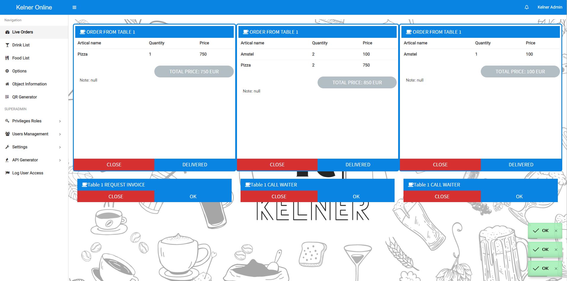 Kelner application is a simple way of ordering food and drink. It can be used in every