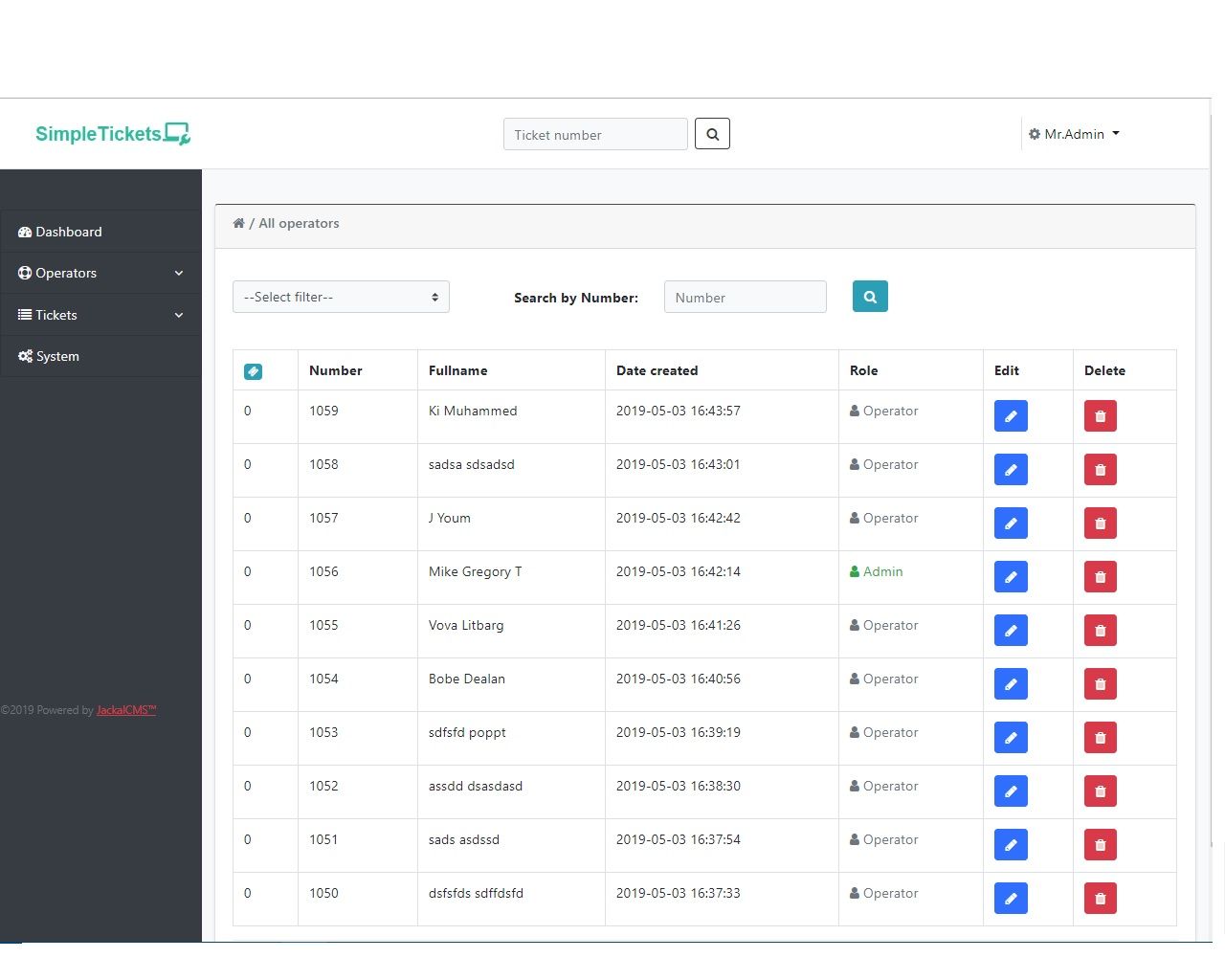 tickets and the total number of tickets, also shows how many tickets were made by the operator.
