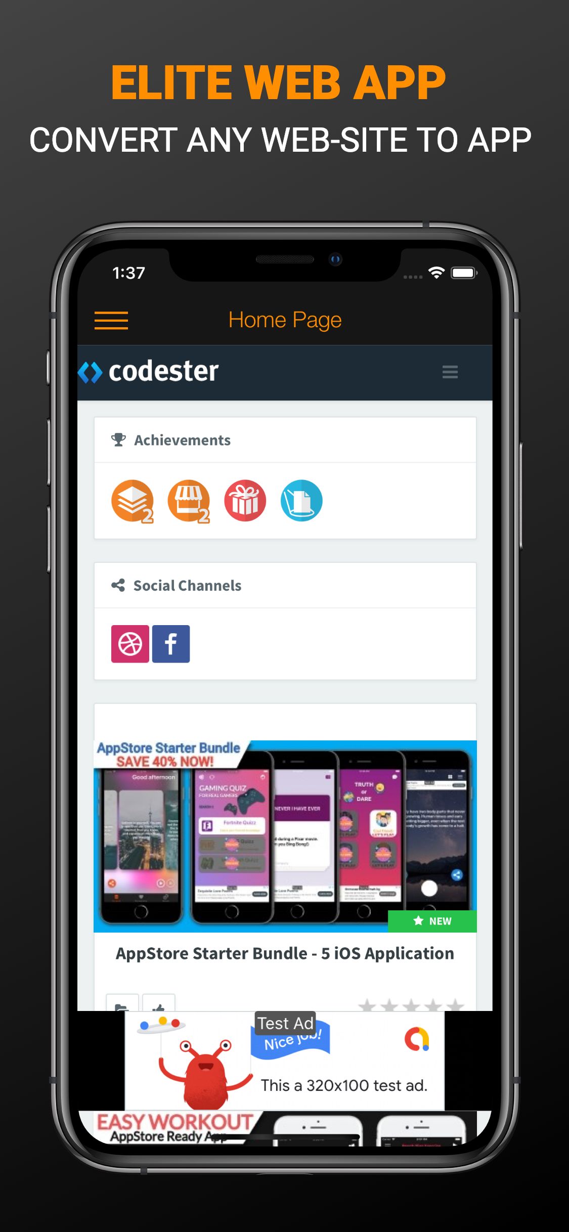 "Elite Web App" provides you with the opportunity to convert your web-site or web-application into an iOS application without any difficulties. Also, this solution gives you the great way for monetisation of your project via Google AdMob in-app advertisement!