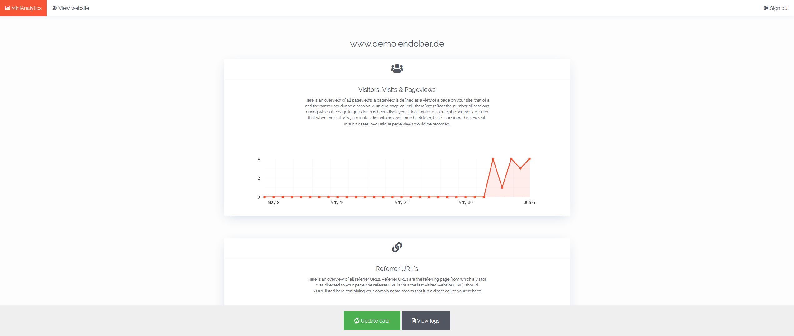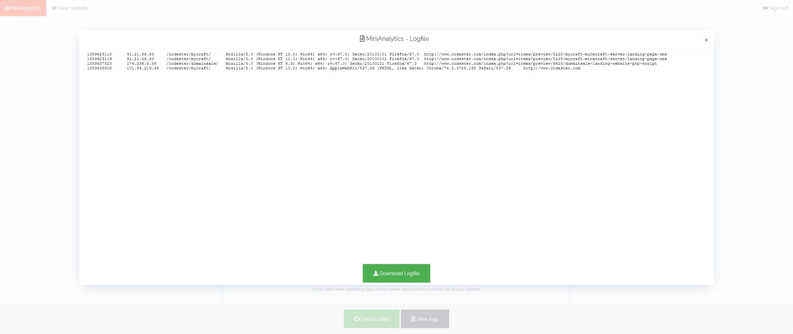 MiniAnalytics is a self-hosted web analytics PHP Script for website owners and can be used with any website. Record the number of website visitors and learn from which URL visitors come to your website, for better capture, all accesses are stored in a log file.