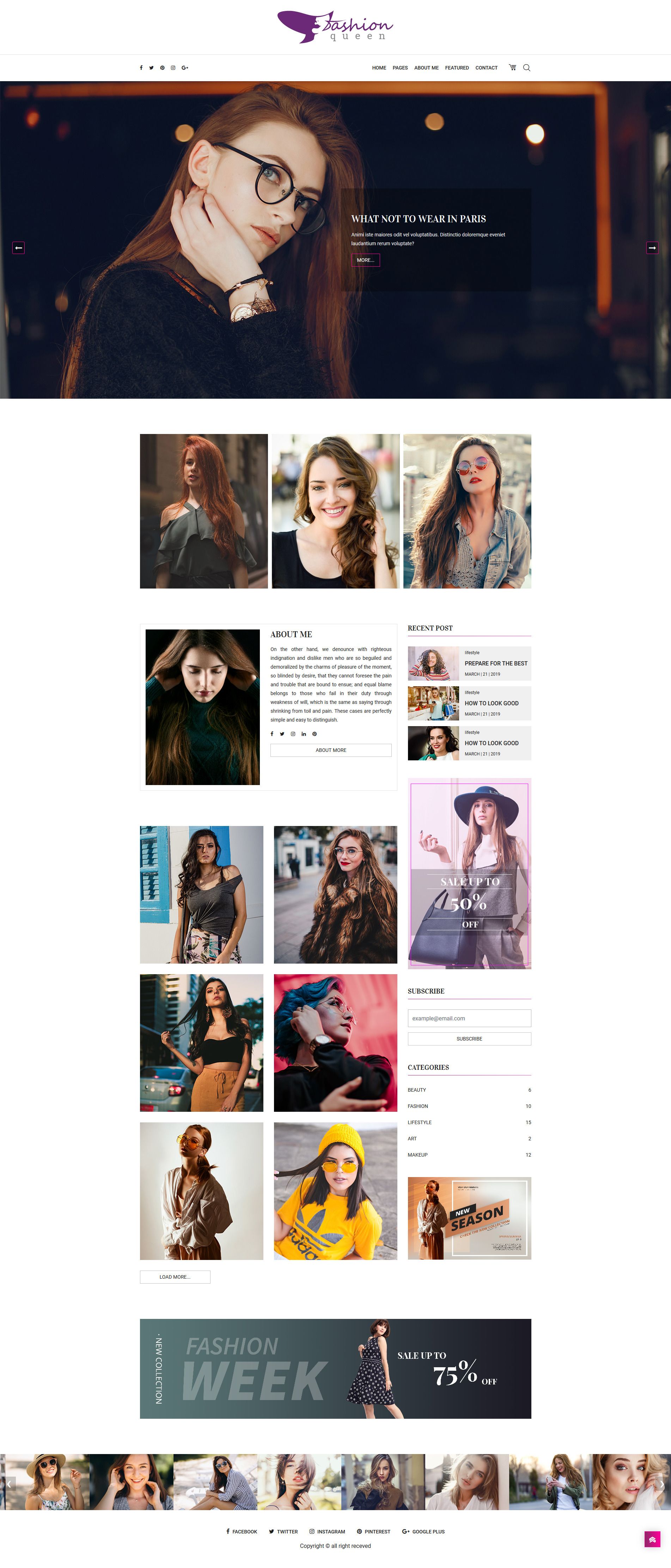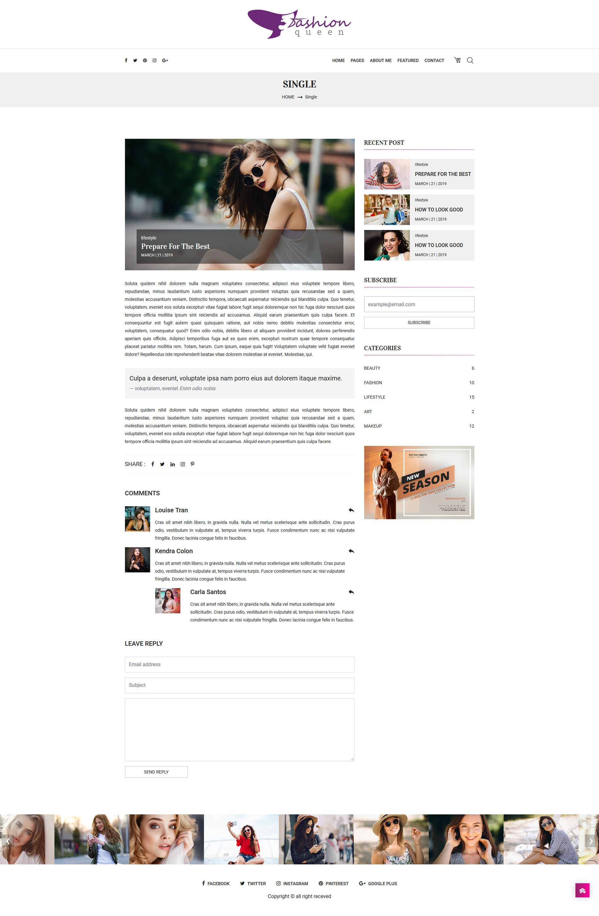 Fashion queen is a clean and minimal blog Template for perfect for writers who need to create personal blog site with simple features and effects to make readers feel the pleasure of reading blog posts and articles, Writing personal blog template mixes between modern, classic and minimal styles and will help you create a simple and clean blog, if you are a blogger, then it’s a perfect choice for you.