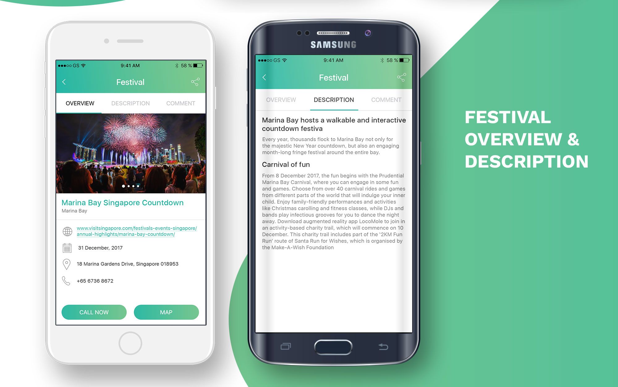 - Tab to Call: user just need to tab to call the selected attractions or festival contact