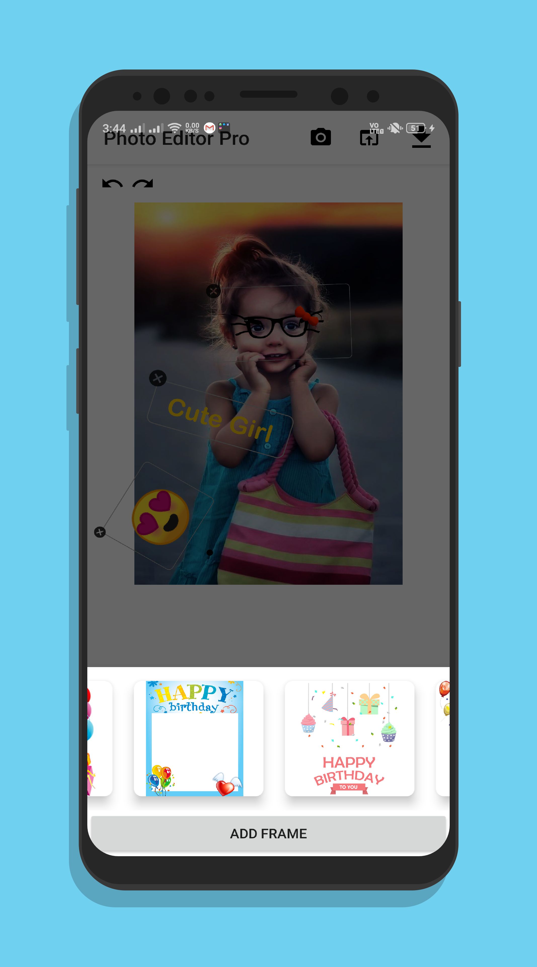 Photo Editor Pro App is a very Professional Photo Editing app that includes almost each and every one features that's required in an editing app. It is fully featured app having Photo Editing Filters, Effects Management, Photo Paint, Text add in Picture, Various fonts selection, Put Frames on the photo, Crop image with advance crop features, Put stickers/image on the existing photo and many more amazing features.