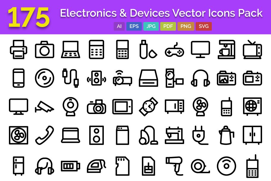 175 Electronics and Devices Vector Icons Vector Icons Set