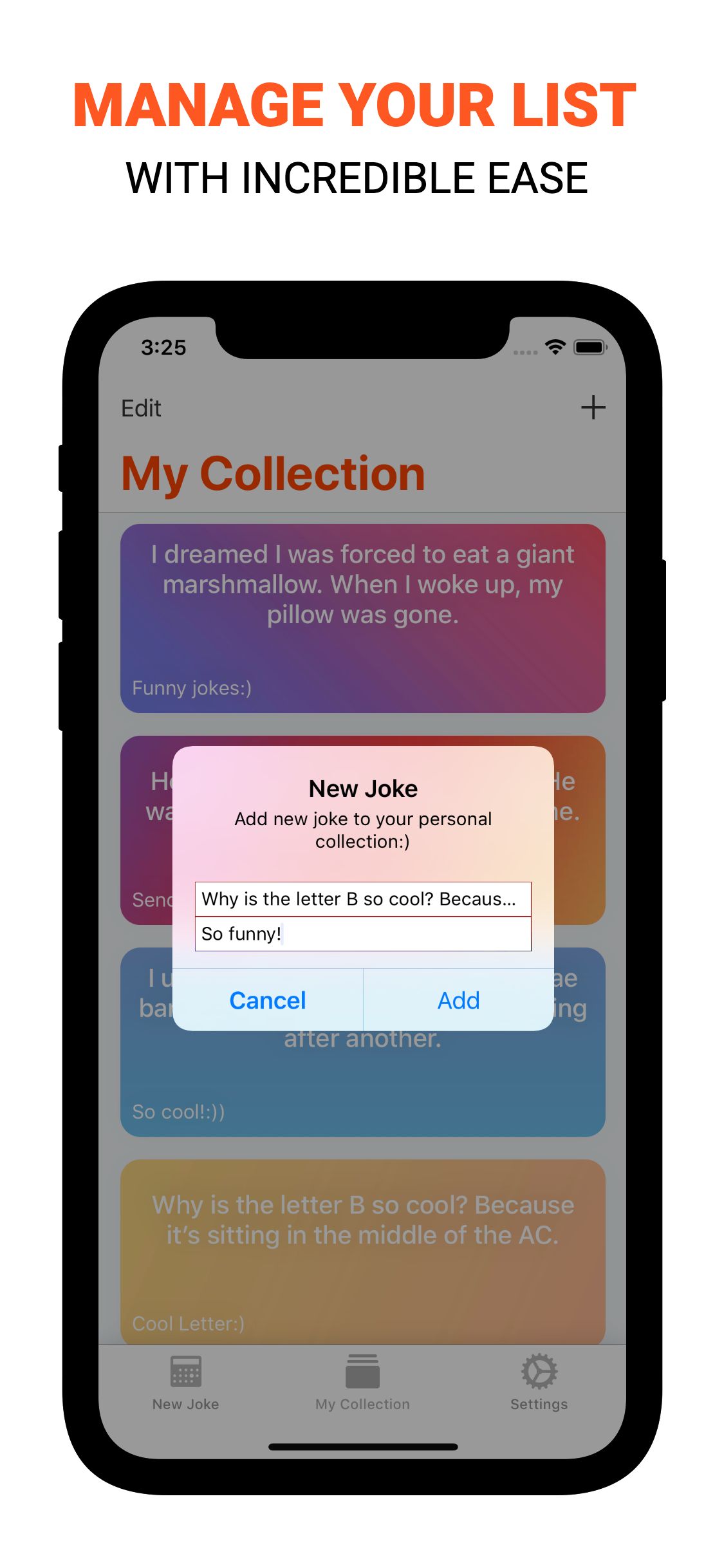- Create your personal collection of jokes with amazing design on your choice