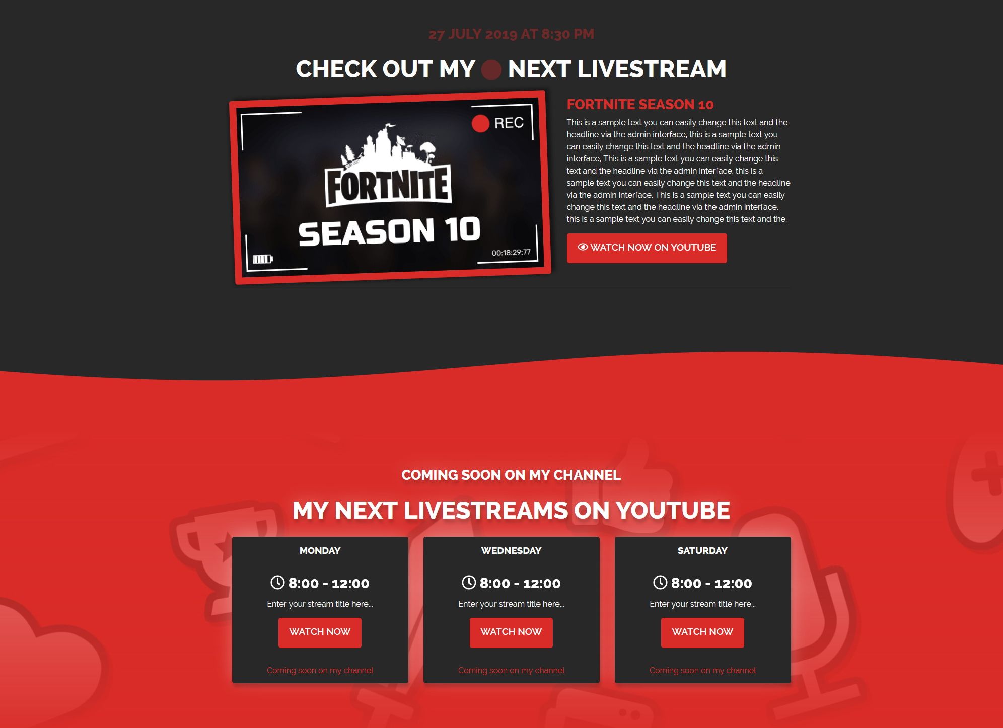 You are online streamer, and looking for a suitable website? Then StreamTuber is just right for you, with StreamTuber you create your own website without any programming knowledge. StreamTuber is Multilanguage and can therefore be translated into any language easy and fast via the integrated admin interface. In addition, StreamTuber offers your community a lot of added value, so you can easily inform about upcoming livestreams or you can present your latest video on YouTube or possibility to bundle all social media on your own page.