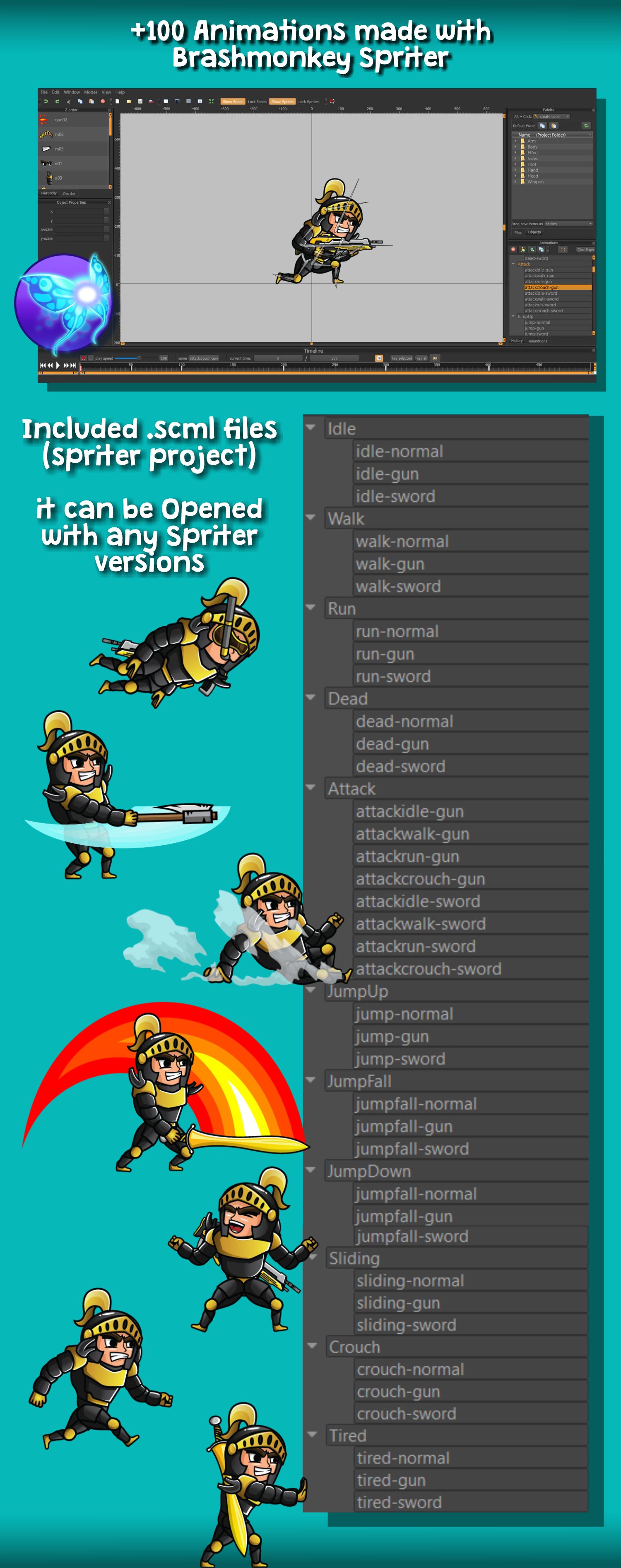 | Tags | vector, spartan, prince, gold, running, character, yellow, king, glorious, KNIGHT, platformer, side-scroller, sprite, Spritesheet, game 2d |