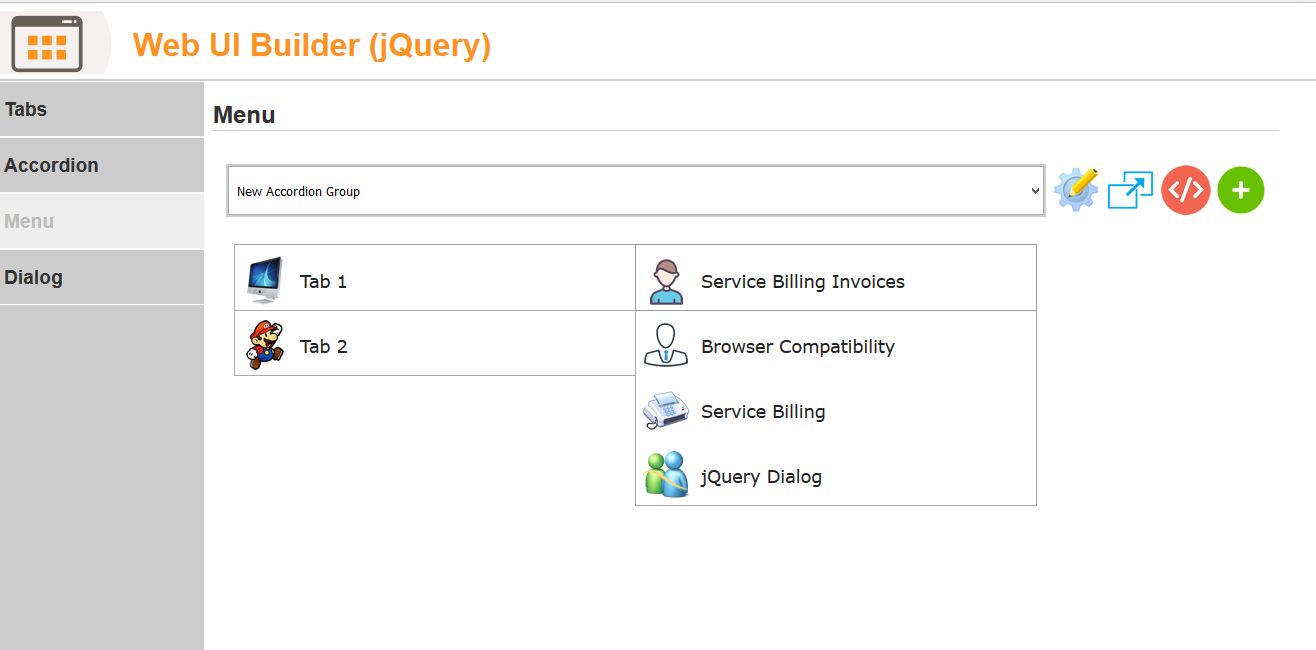 This Web Based Application will help you to build your own User Interface items (Tabs, Accordion, Menus and DIalogs).