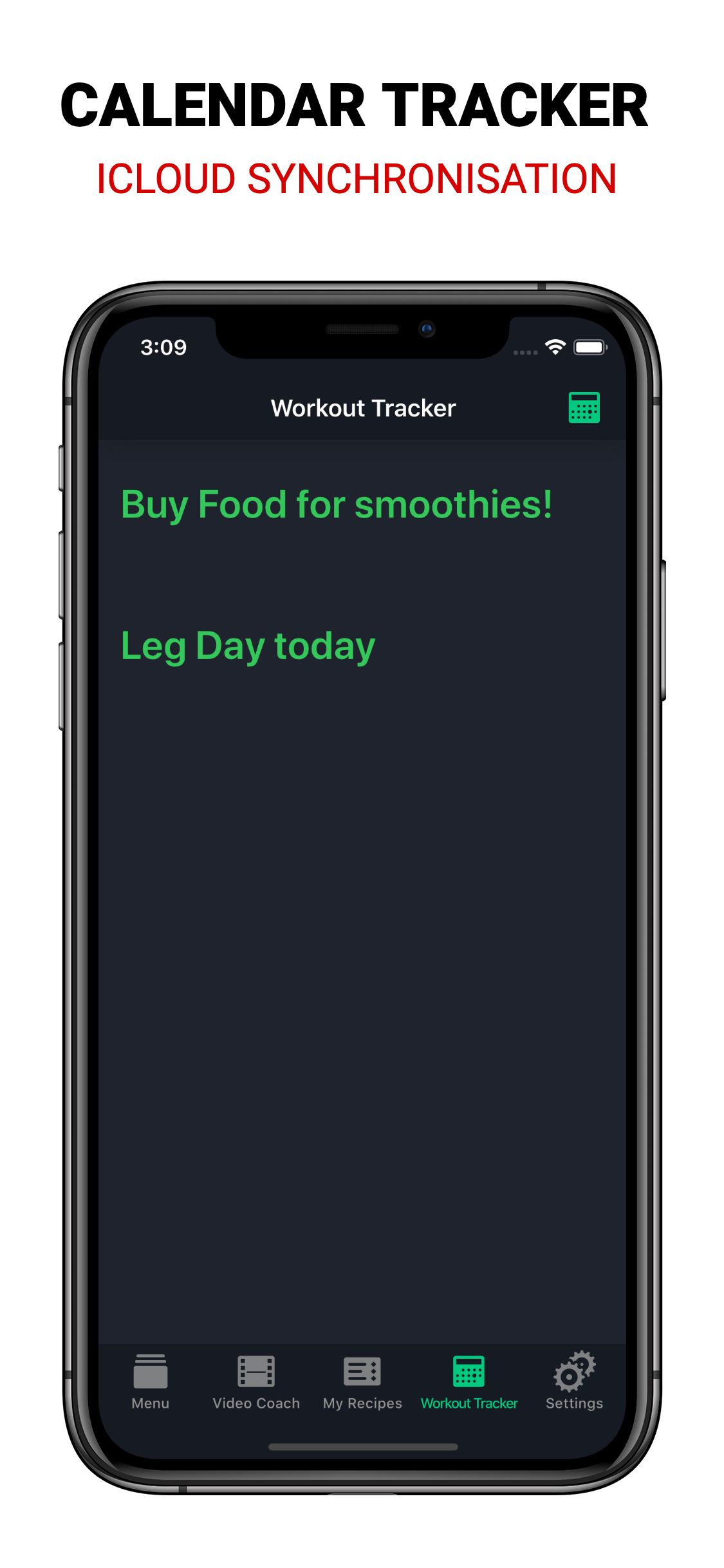 - Calendar and iCloud workout tracker