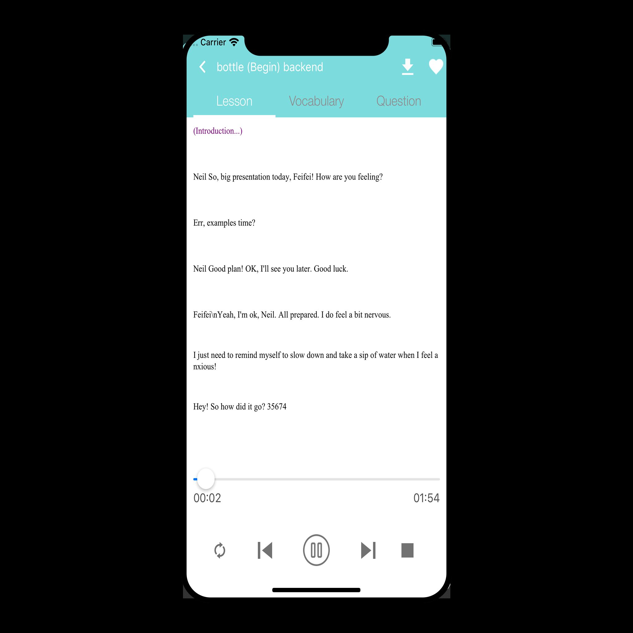 - Â Â App has a lesson download feature that allows users to listen while not connected to the network