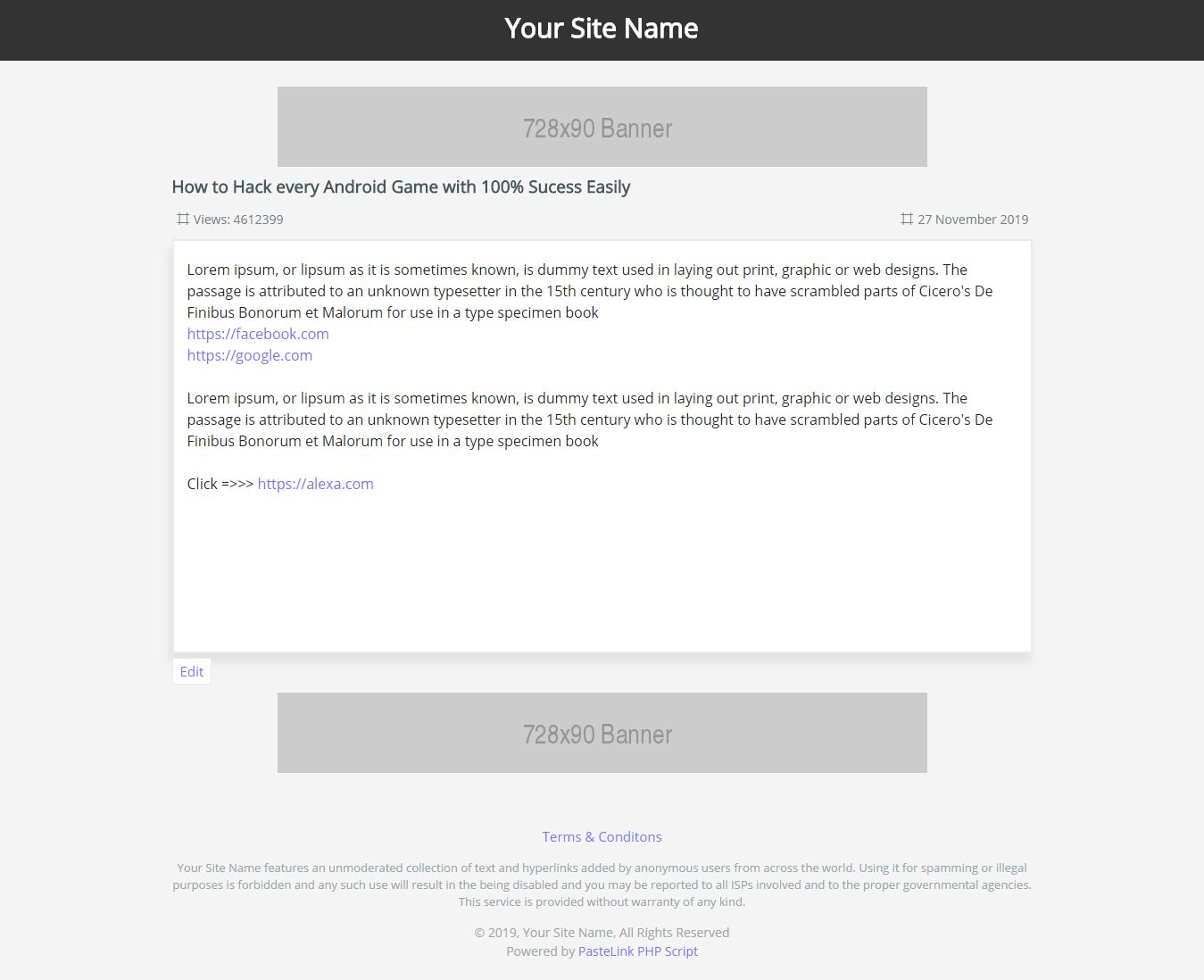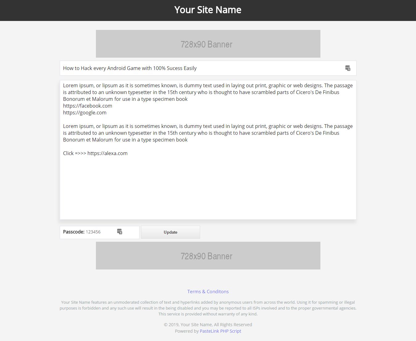 Pastelink is a php script suitable for anyone who wants to create a website where visitors can share text and links or both. It is roughly similar to the website Pastelink[dot]net. This script is designed as simple as possible to make it more user friendly and easy to use. Website owners can make money from advertisements.