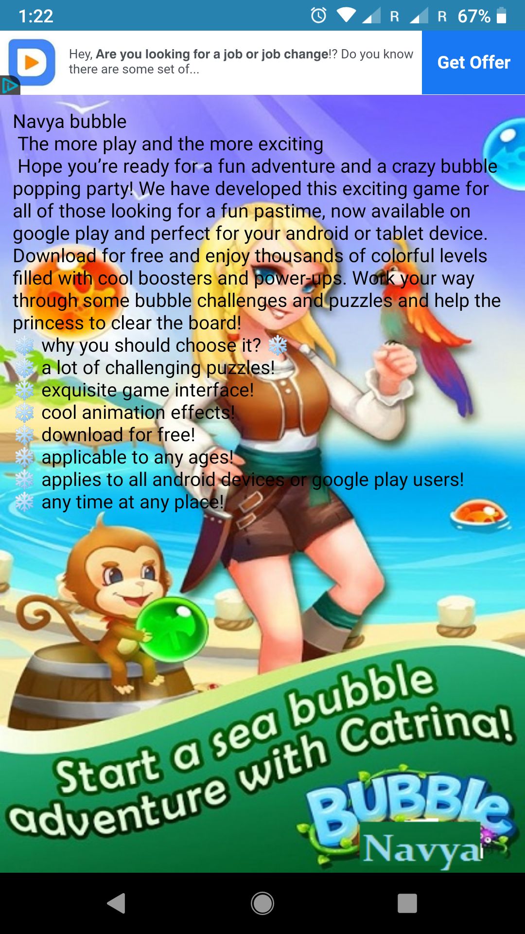 hope you’re ready for a fun adventure and a crazy bubble popping party! We have developed this exciting game for all of those looking for a fun pastime, now available on google play and perfect for your android or tablet device.Download and enjoy thousands of colorful levels filled with cool boosters and power-ups. Work your way through some bubble challenges and puzzles and help the Navya bubble Shooter to clear the board!