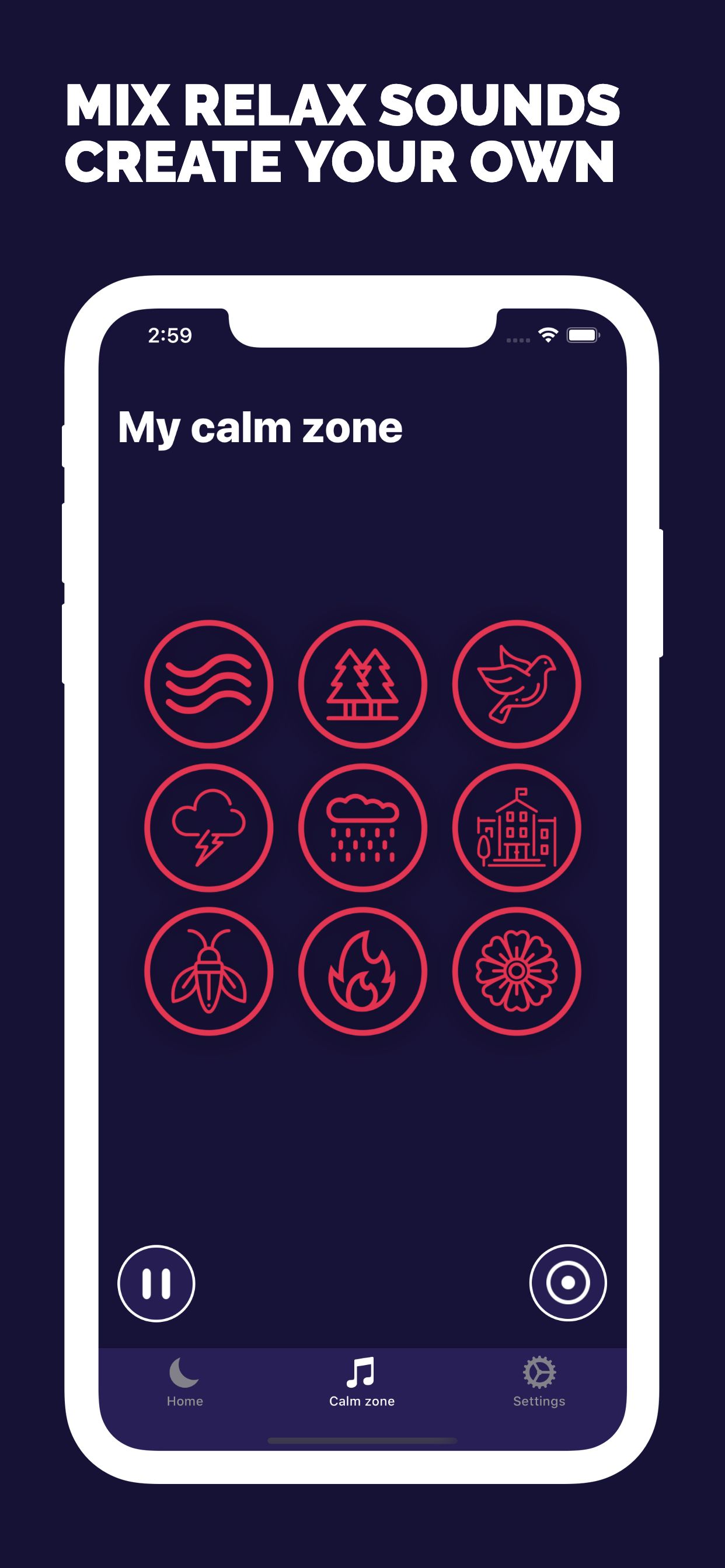 Also, you can mix all of the sounds on your choice to create the perfect way of your relaxation. Save your favourite sound mixes so they are always by hand with you!