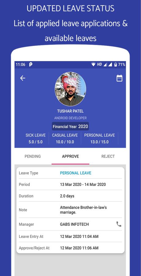 Interactive mobile app to manage employees leaves in your company.Employees can easily manage their leave details on android mobile using this application.Employees can easily track their leave balance and details using financial year selection.