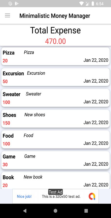 Minimalistic Money Manager With AdMob AndroidMinimalistic Money Manager With AdMob Android
