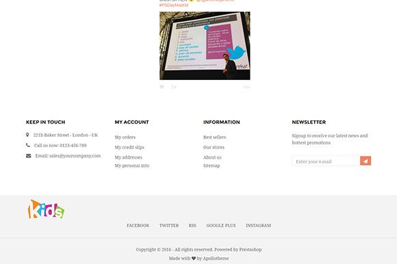 AP Kids Store is an excellent responsive prestashop theme with a lot of new features and modern ,clean design. It is used for kid shop , moreover, also can be easily modified to adapt to Glass Store Fashion Shop , Hat Shop , Shoes shop, Ring Store, Cosmetic Store and many more.