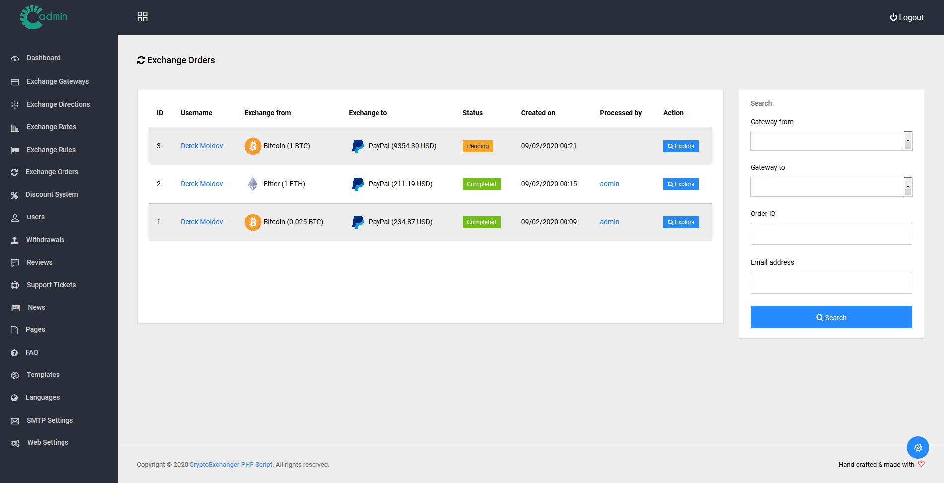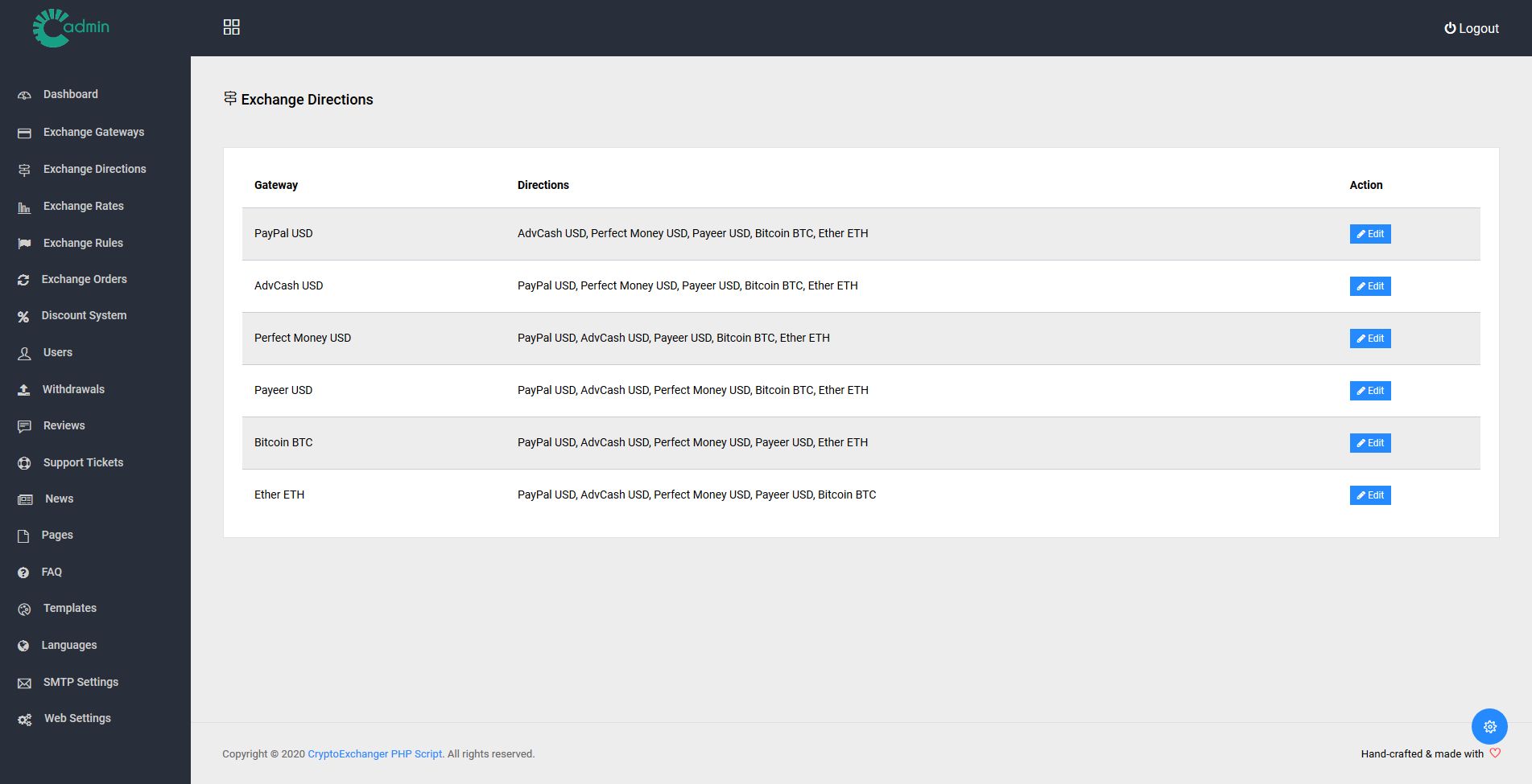 CryptoExchanger v4.0 is powerful PHP Script to build your own online e-currency exchanger.