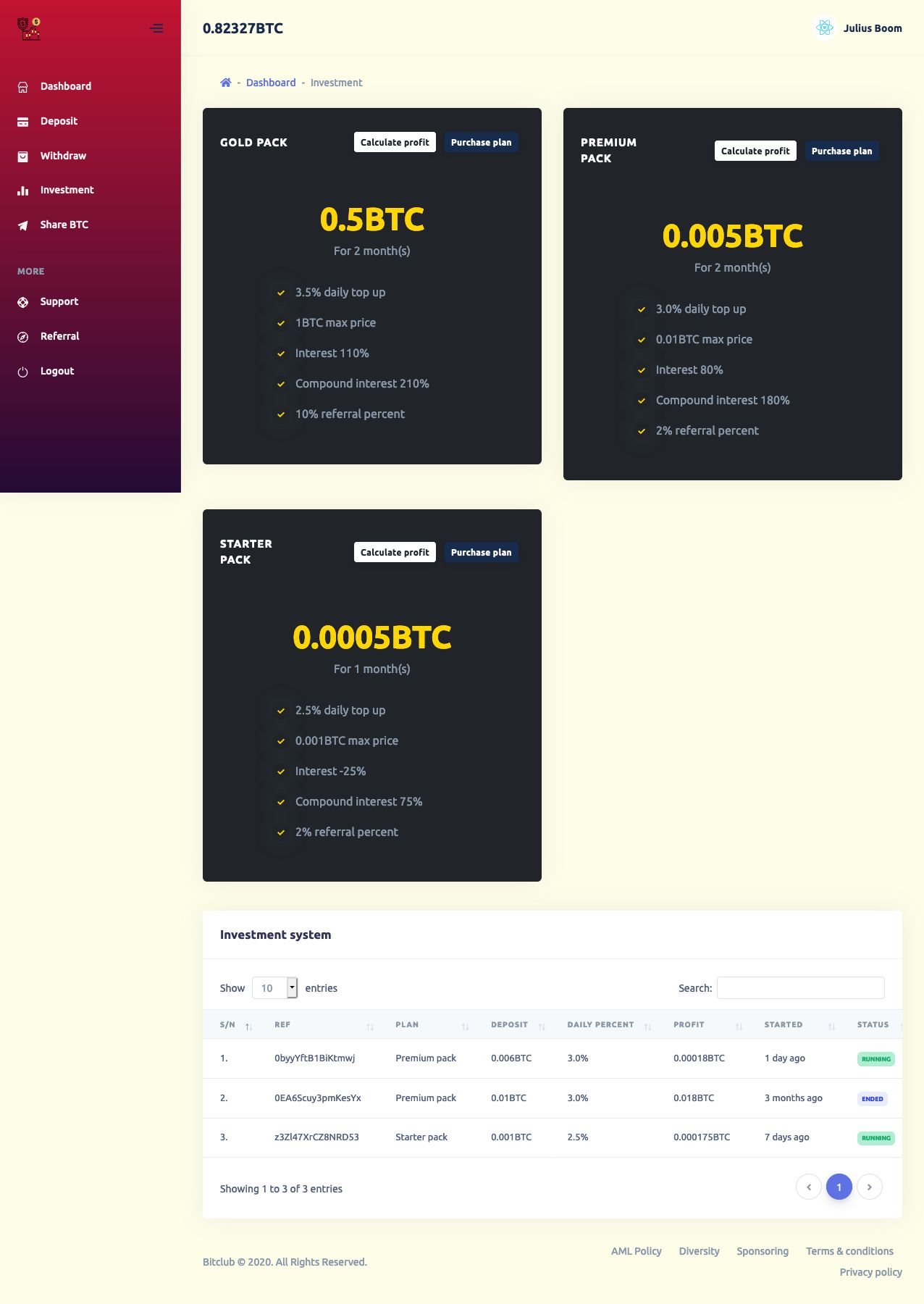BITCLUB is an Bitcoin HYIP PHP Script made with Laravel Framework. its Built to be beautiful, fast, secure and powerful.