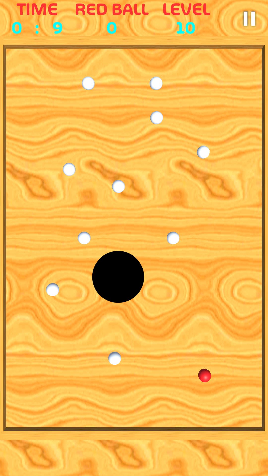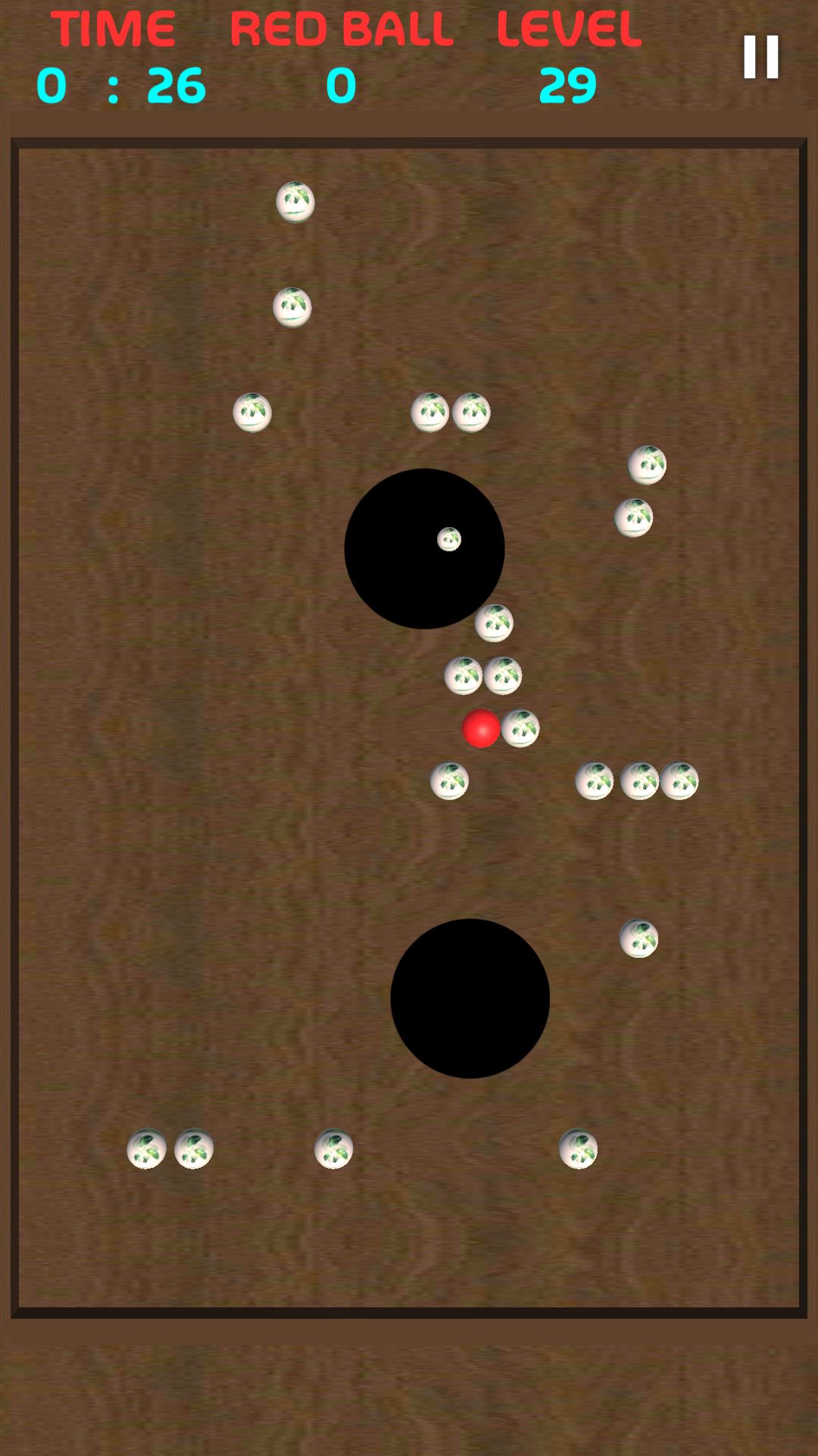 Move all of your balls into a hole by tilting or swiping your mobile device. The red ball should be the last to go in.