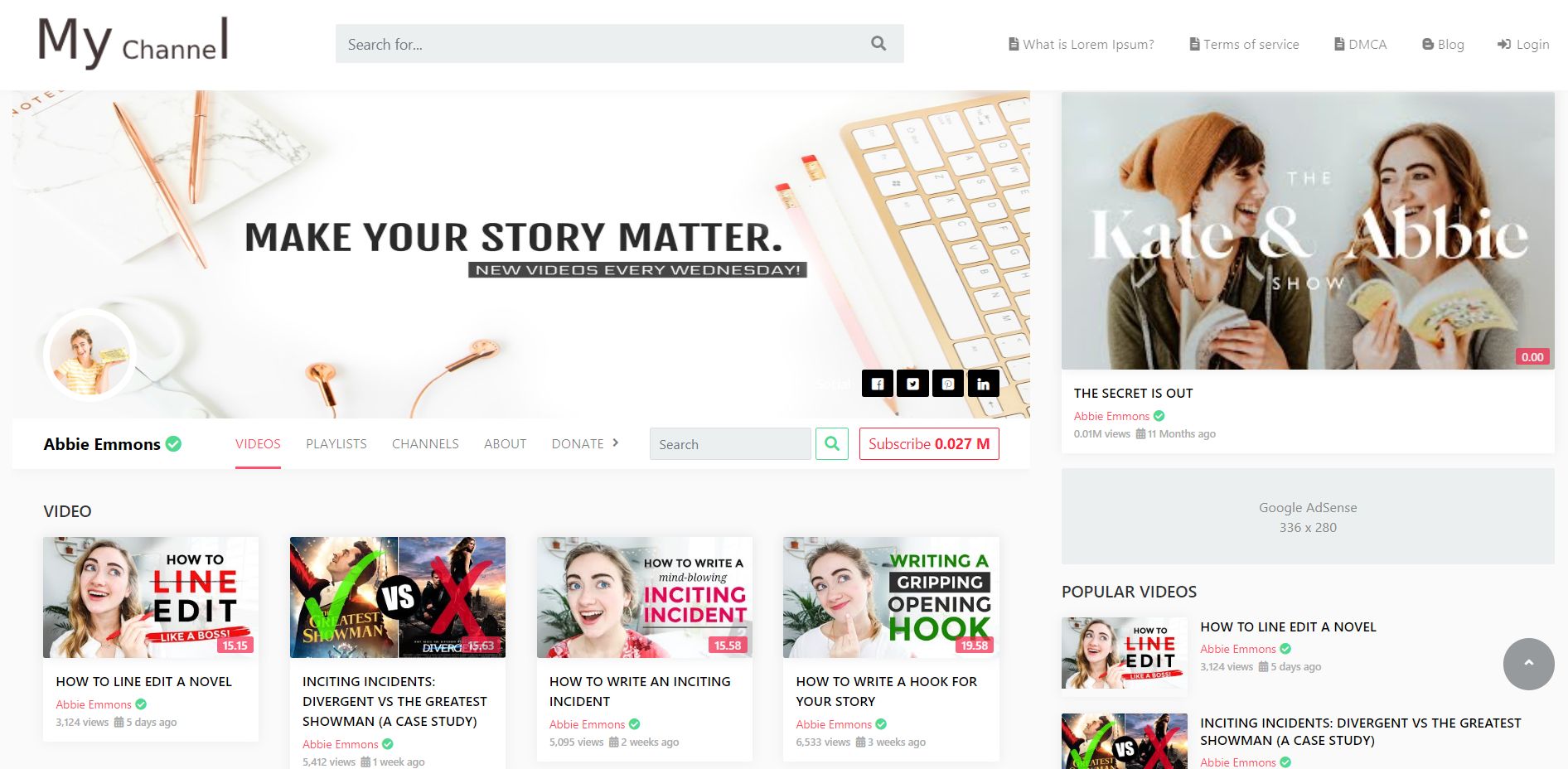 MyChannel - Youtube Channel Website ScriptMyChannel - Youtube Channel Website Script