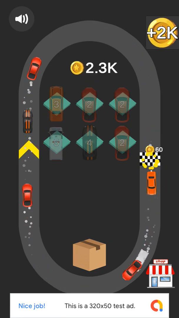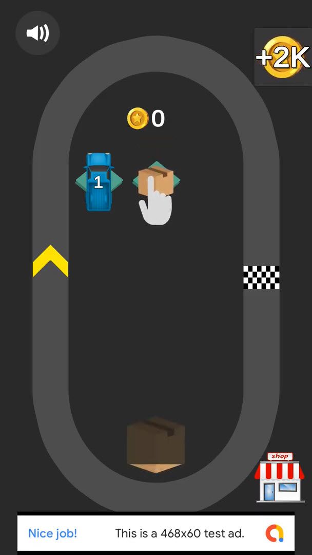 On desktop/web : Click on the box to open it, drag&drop the cars to merge them and to race, click on the disabled car drag to stop the racing.