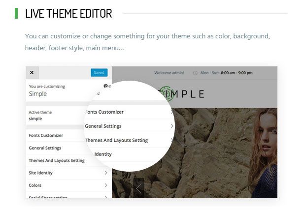 - Wordpress Customizer Supported: allow you configuring theme’s functions via Wordpress options. No need any Theme Options
