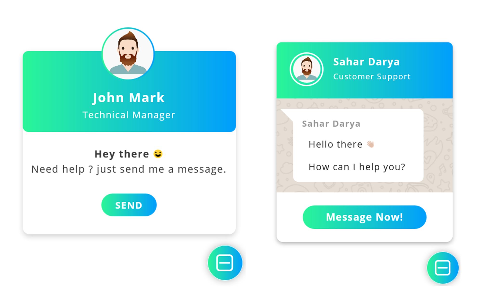➣ These chat plugins are provided with 10 uniq designs, 7 uniq button, 8 color combination.