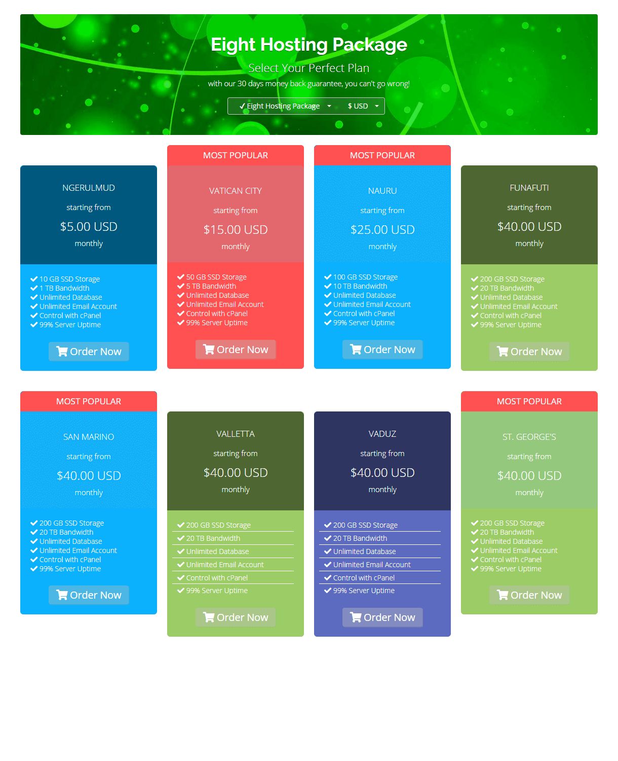 - Beautifully designed all products pricing chart.