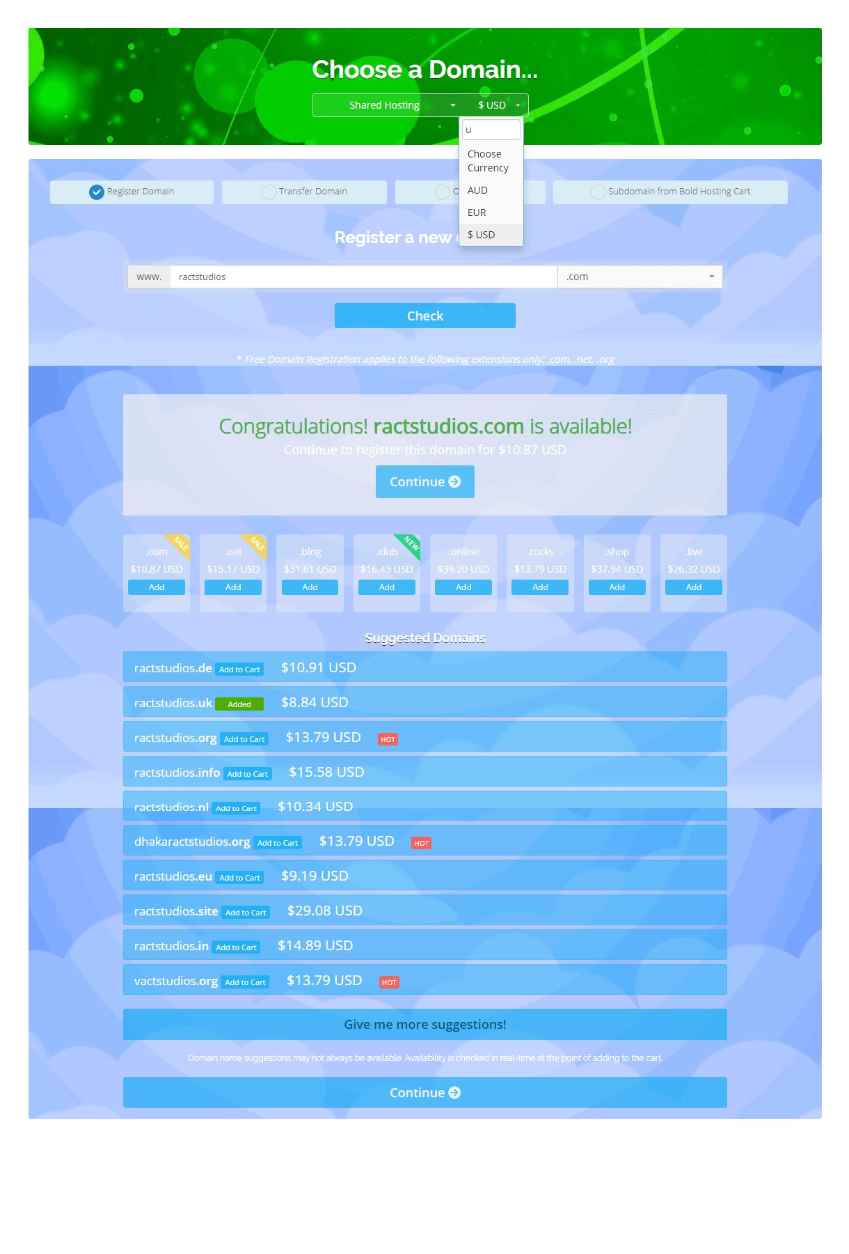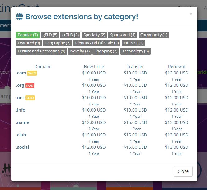 - Choose a Domains - when ordering a product