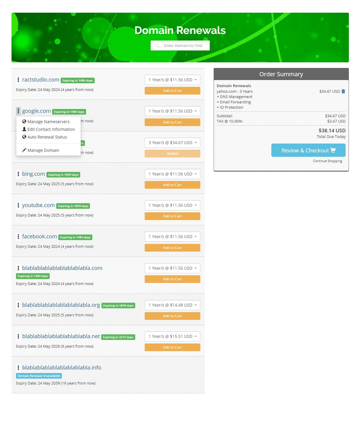 - Renew Domain etc pages.