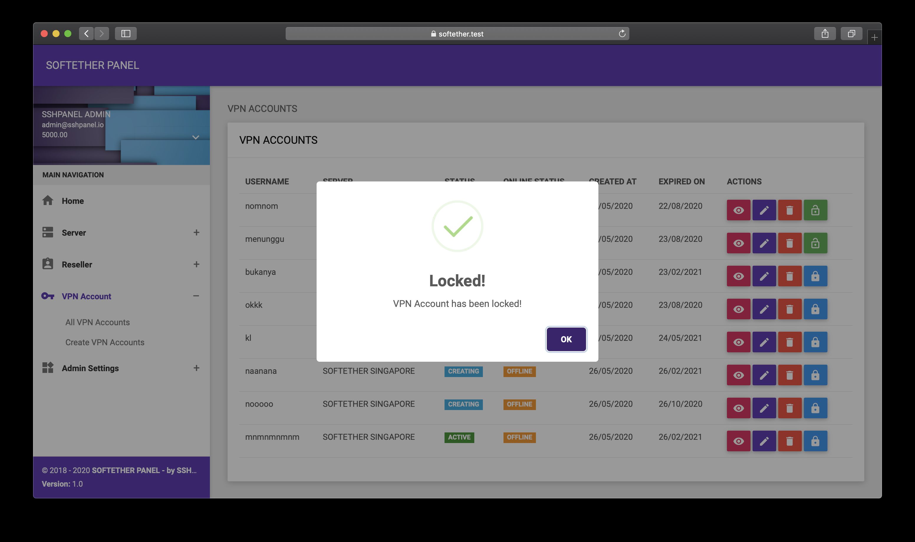 Want to temporarily lock the VPN account dues to various reason? Now just 1 click and the VPN account is locked!