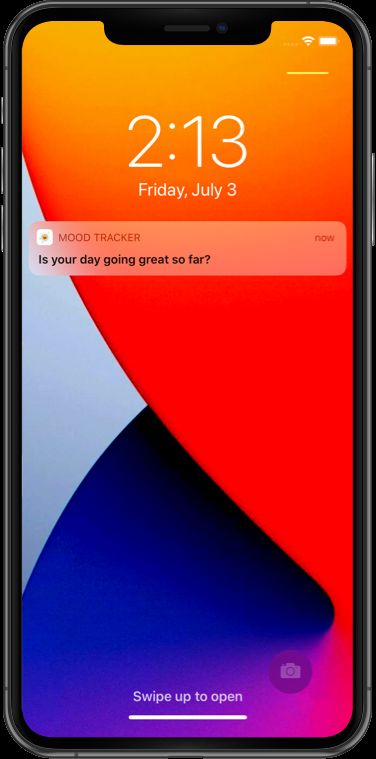 The app as shown in the video demo. This app was built with Xcode and requires iOS 13 or higher and SwiftUI. The app comes with Google AdMob interstitial ads. These ads are triggered when user taps on the "SAVE" button after selecting a mood type. See video demo above.