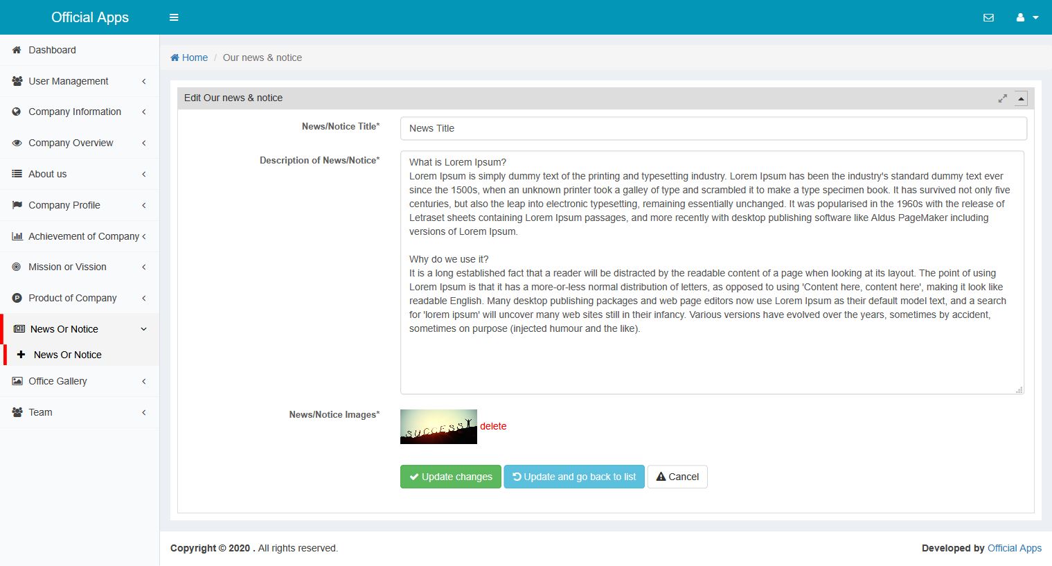 Official apps is a mobile application for Android and iOS. But it has strong admin panel for control your apps content from admin panel. Its has some strong feature