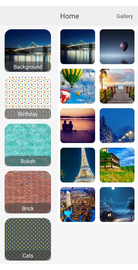 import your own background from your gallery. Simply store or transfer your backgrounds into your phone gallery and import them by clicking on "Gallery"