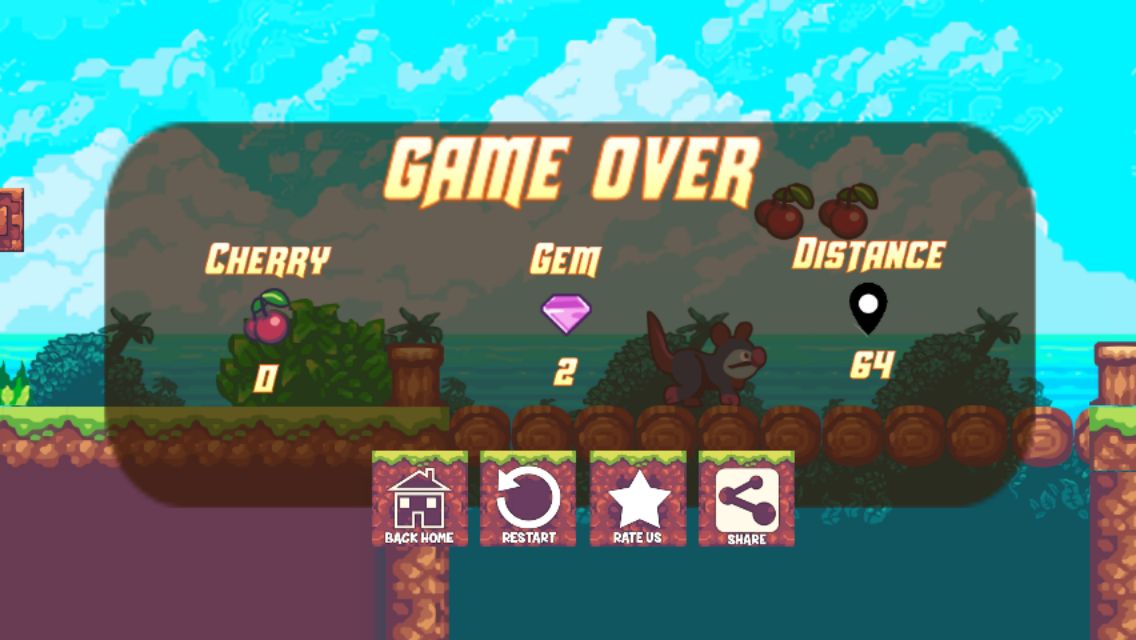 Foxy land is inspired from the original game FOXY LAND , this game built on buildbox version 2.3.10 , and it have 3 challenged worlds , and this game contain rate button , share button , sound Off/On ... also this game contain  AdMob Ads (Banner & interstitial) , you can earn money though it.