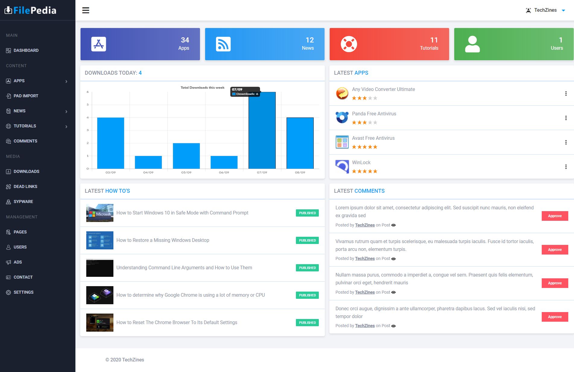 Powerful Admin Panel - FilePedia comes with powerful admin panel to manage all day to day content publishes.