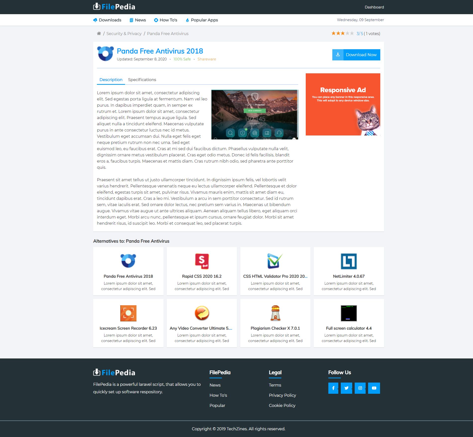 FilePedia is a fully responsive, customizable & powerful laravel script which comes with easy to import softwares using PAD files.