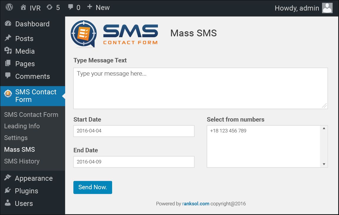 Wordpress Professional SMS Contact Form PluginWordpress Professional SMS Contact Form Plugin