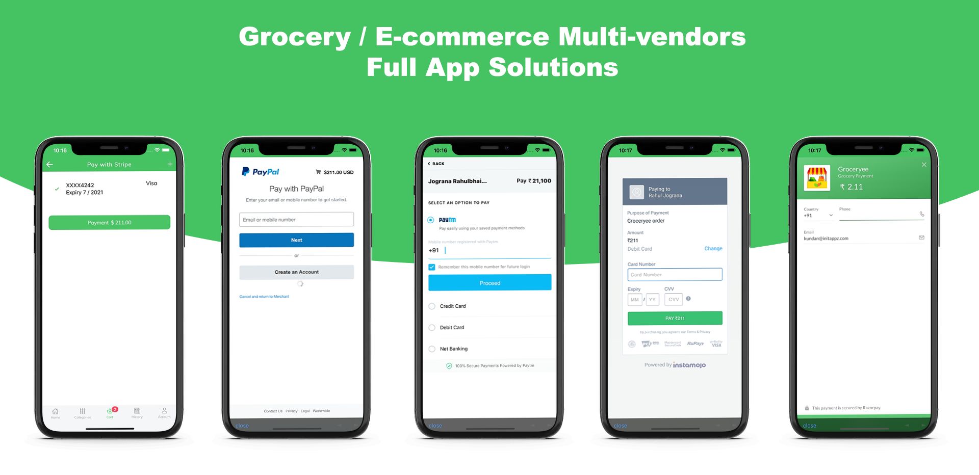 - Mutli payment gateway (Cash on Delivery, PayPal,Stripe,Razorpay,instamojo,paytm,paystack,flutterwave)