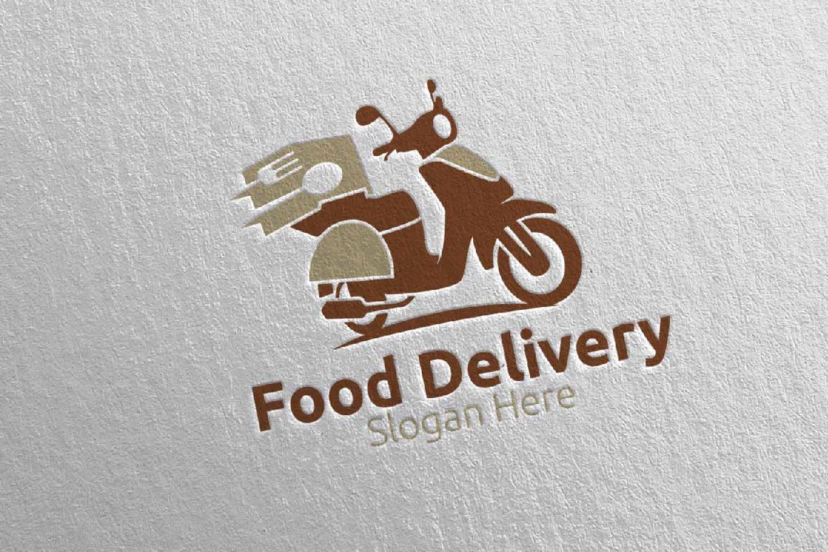 Scooter Fast Food Delivery Service Logo for Restaurant, Cafe or Online Catering Delivery Template Features: