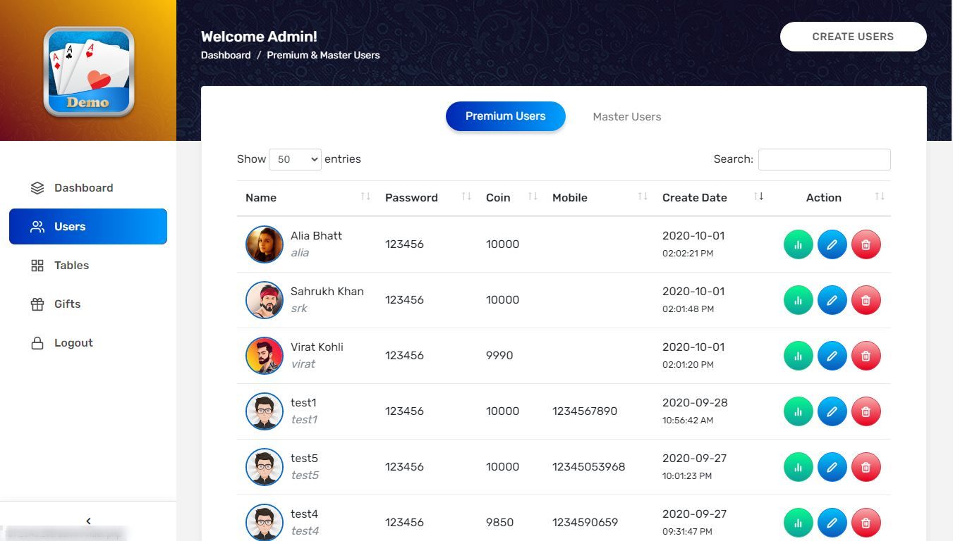 - Users :Â Add update & delete user with very Easy. see demo in above screenshots.